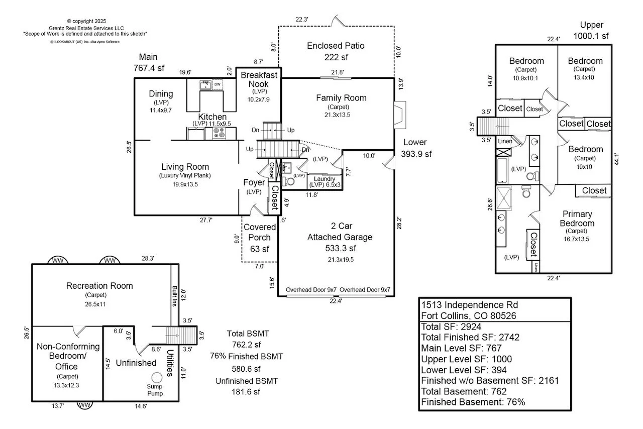 Basement Full Basement, 75%+Finished Basement, Sump Pump